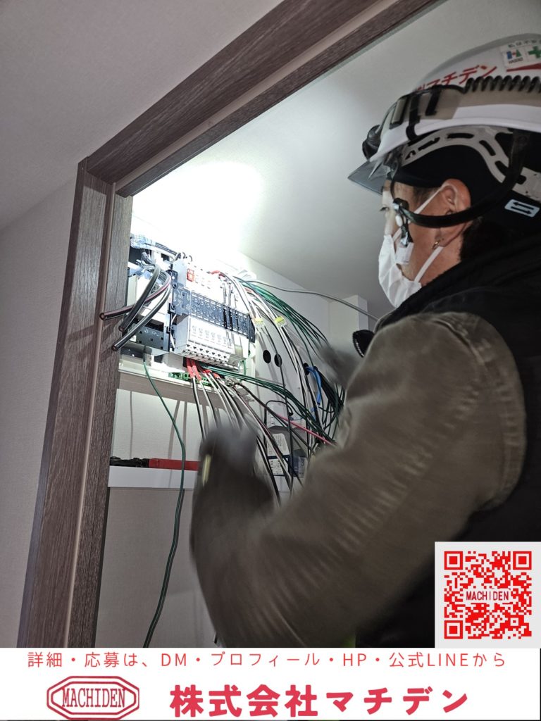 分電盤の接続工事中